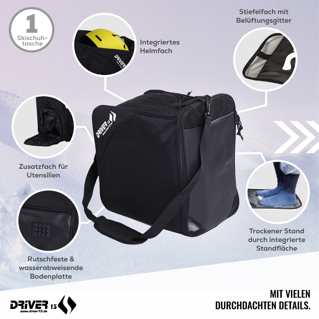 Skitaschen Set (2-teilig ) Skisack (140-210cm) und Skistiefeltasche mit Helmfach schwarz
