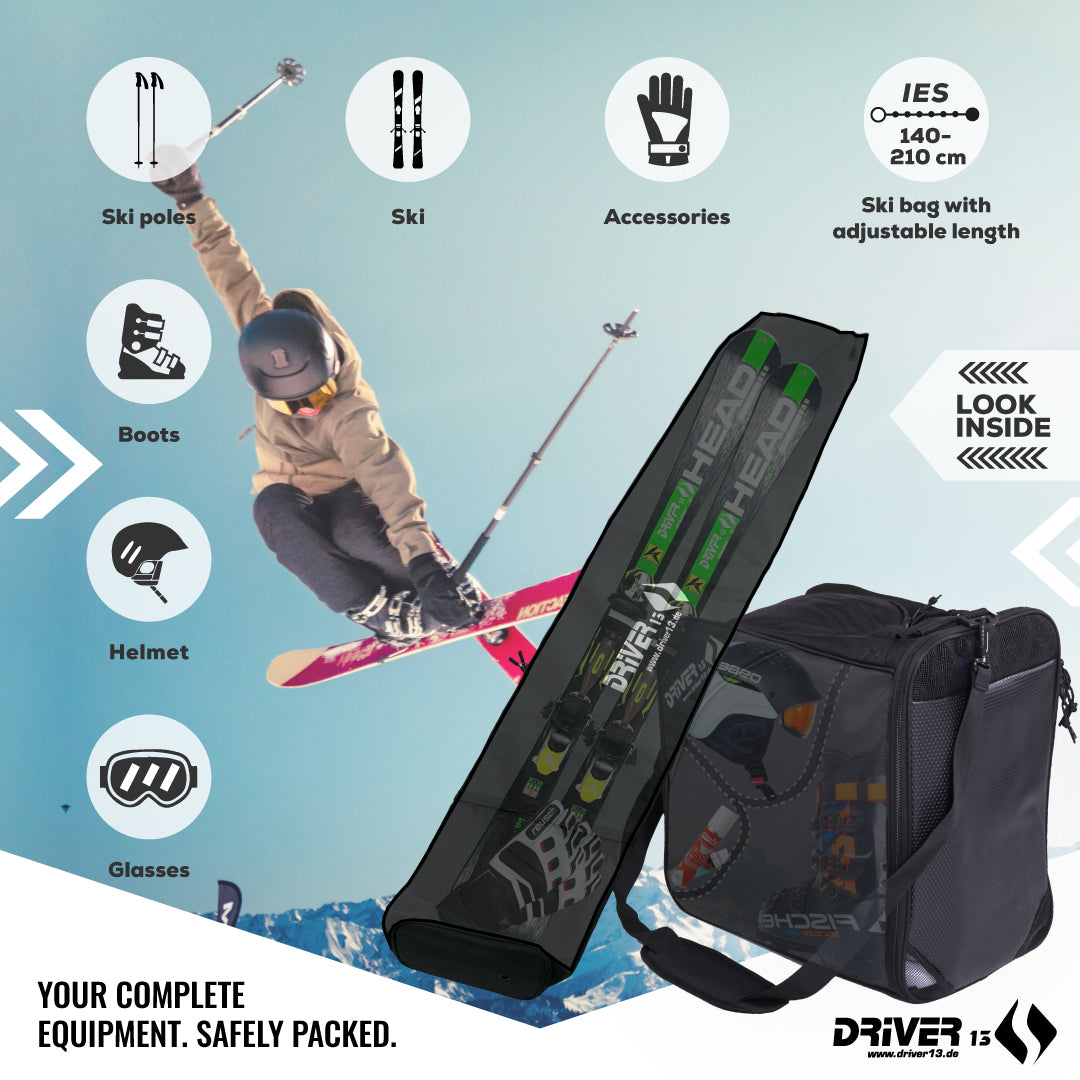 Ski bag set (2-piece) ski bag (140-210cm) and ski boot backpack with helmet compartment