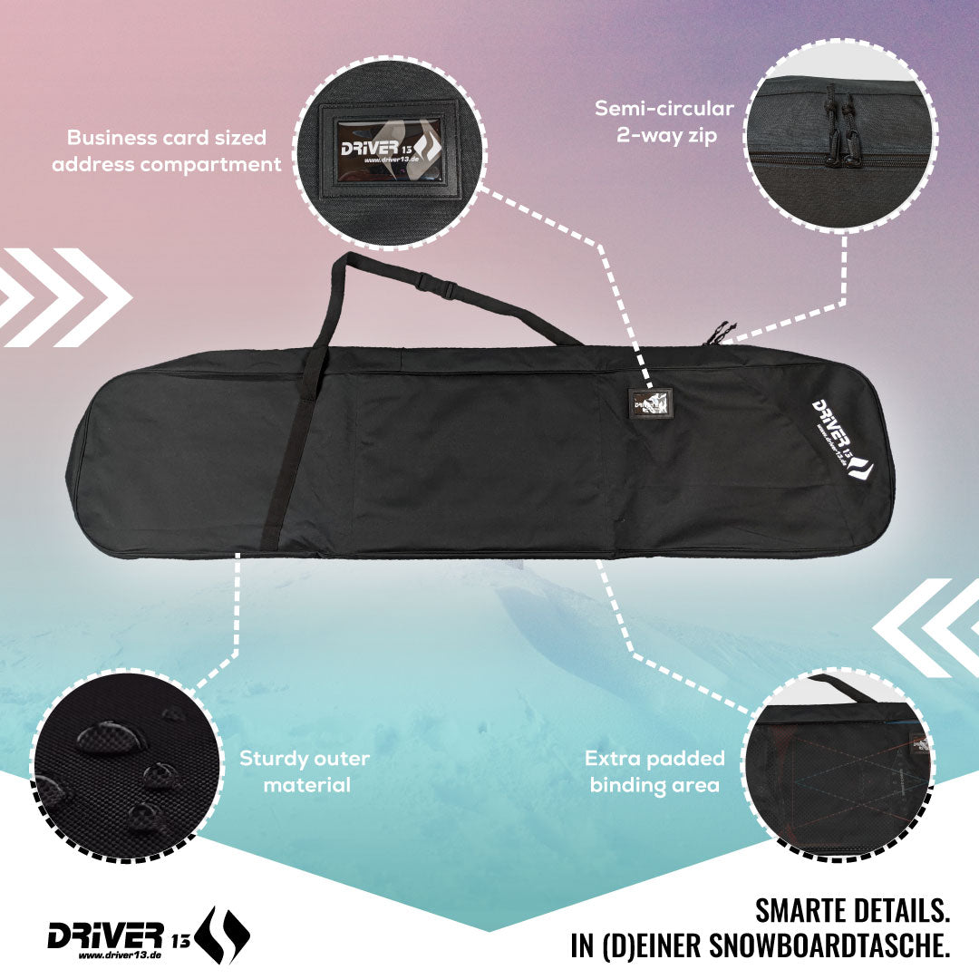 The perfect addition to the snowboard bag. Combine the snowboard bag with the popular Driver13 boot bags and boot backpacks with integrated helmet compartment.