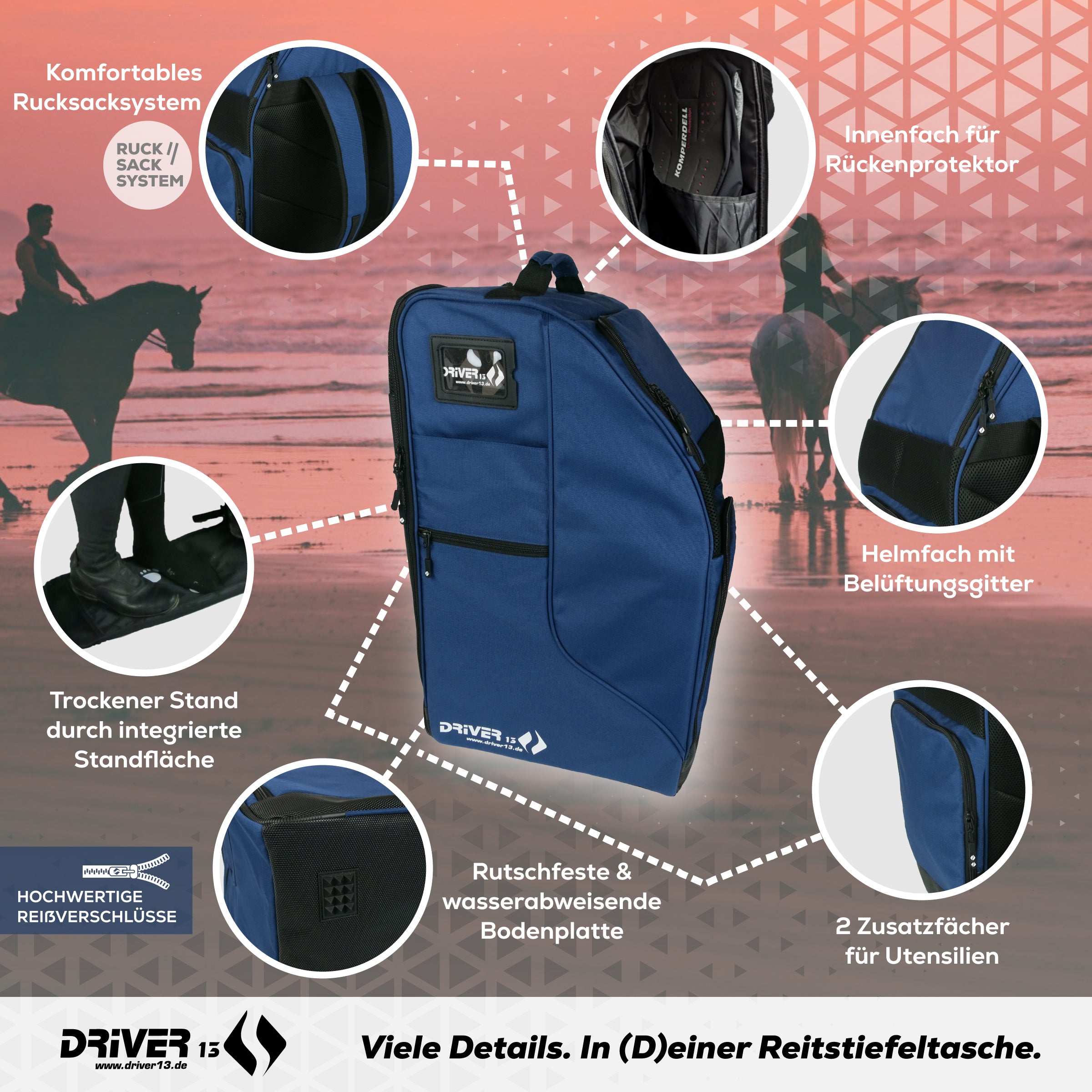 All of our riding boot bags and backpacks can accommodate riding boots with a shaft height of up to 60 cm.