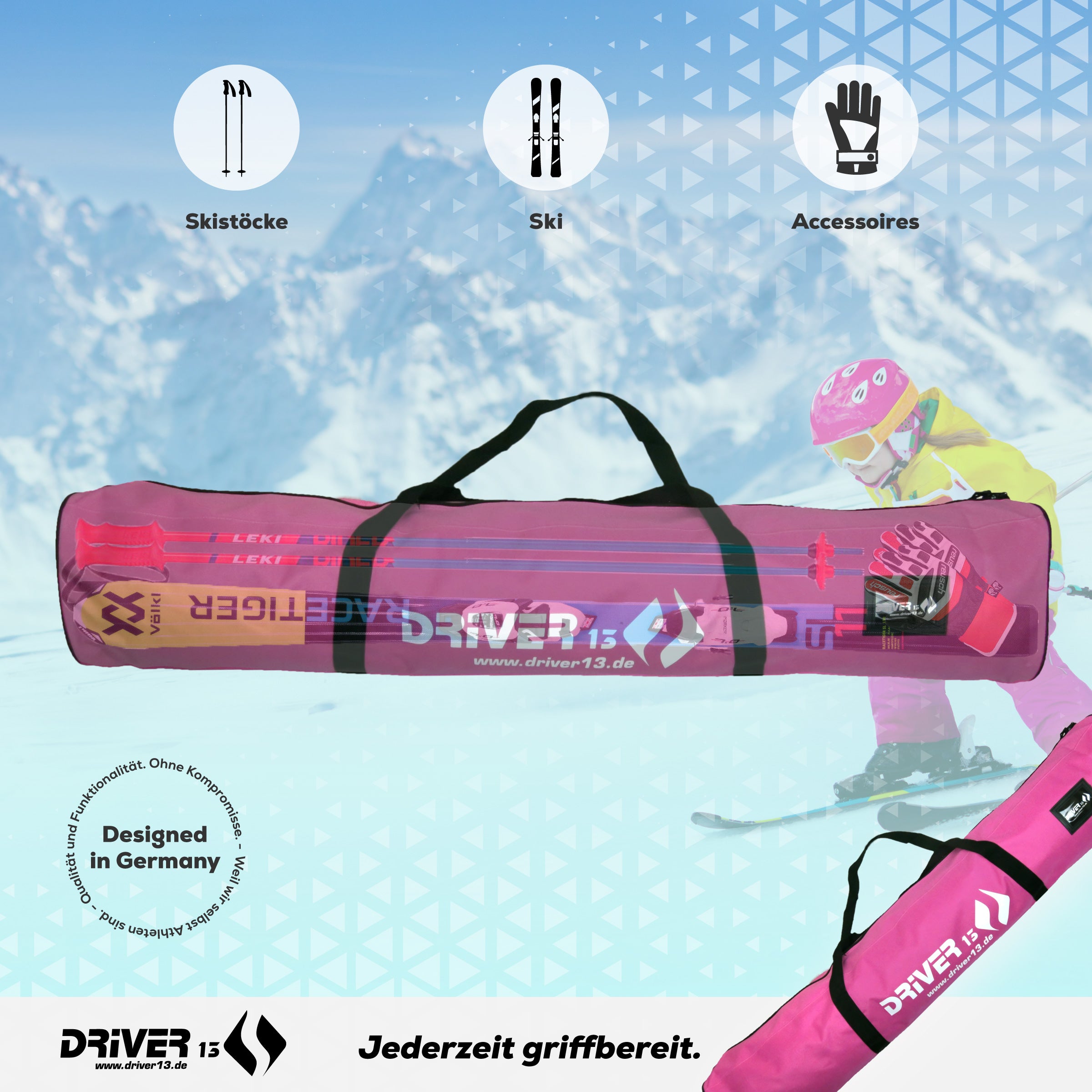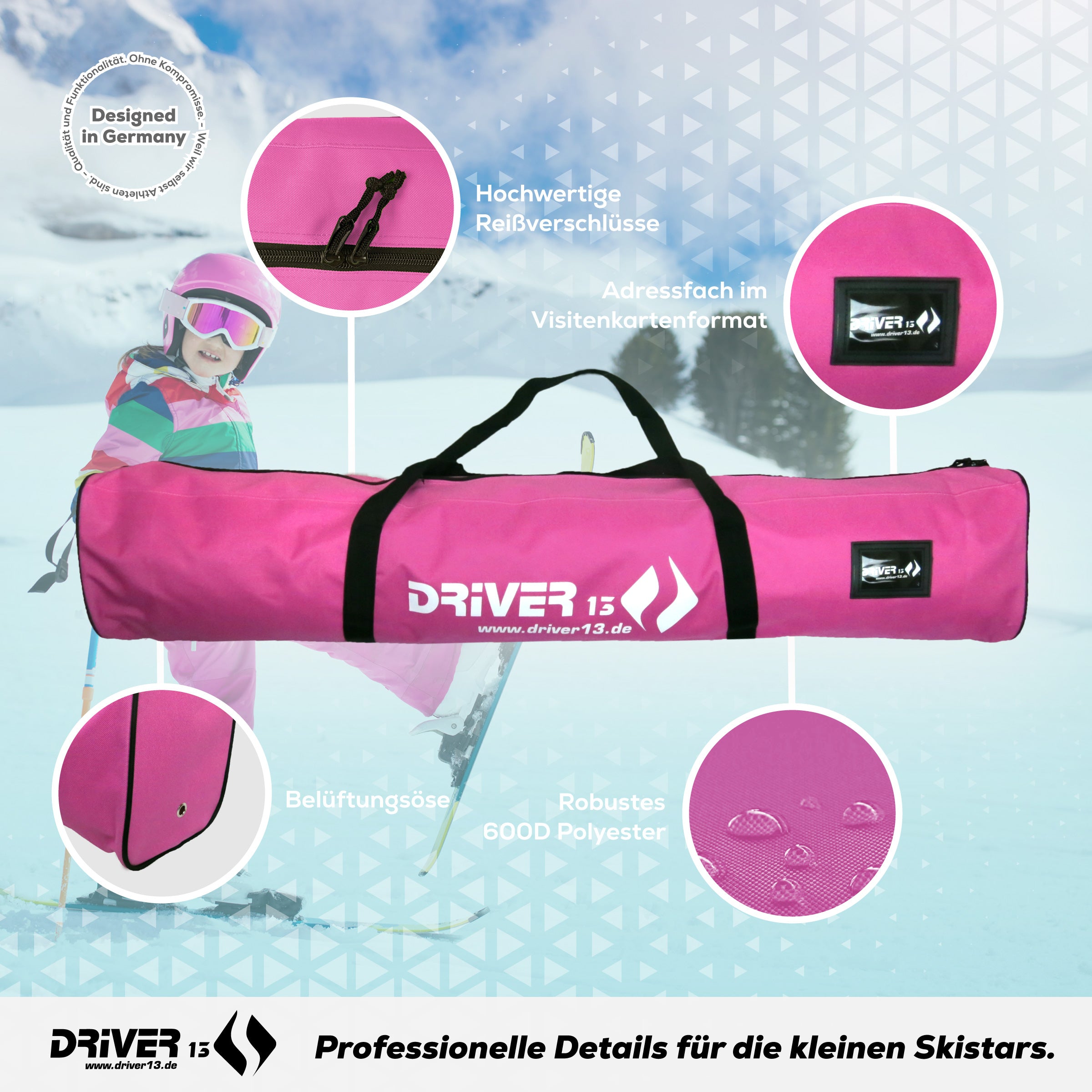 The Driver13 ski bags were designed according to the maxim of combining simplicity with high functionality. The "Ski Bag 120 cm for Kids" offers enough space inside for two pairs of skis (including bindings) and poles. Thanks to its water-repellent surface, the interior is also very easy to clean.
