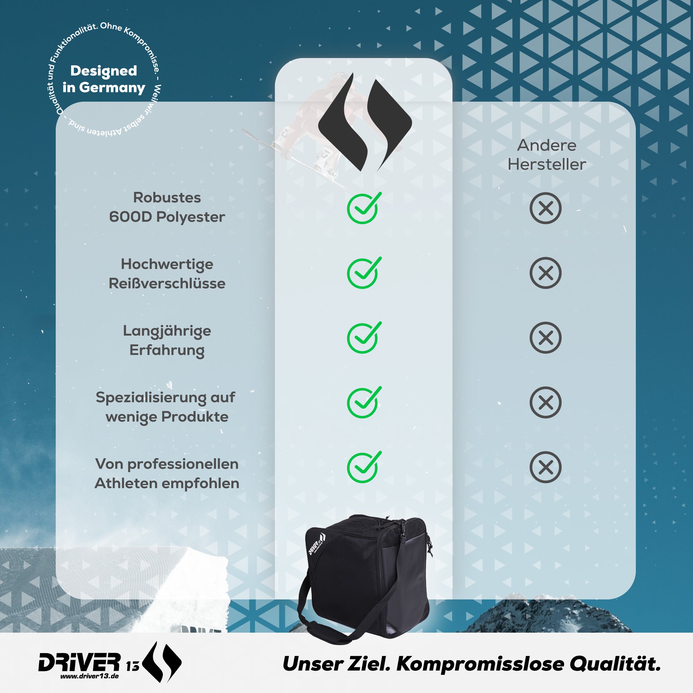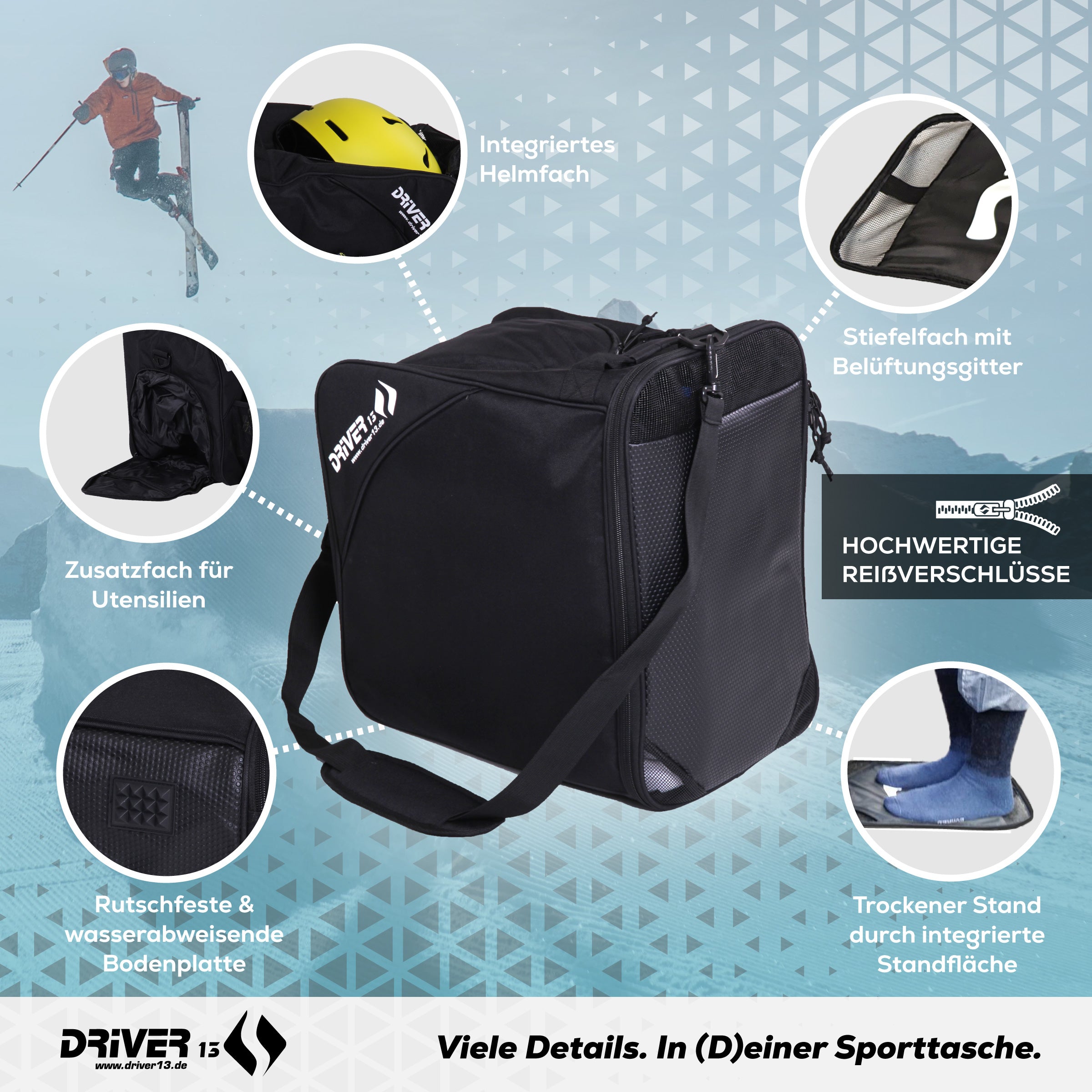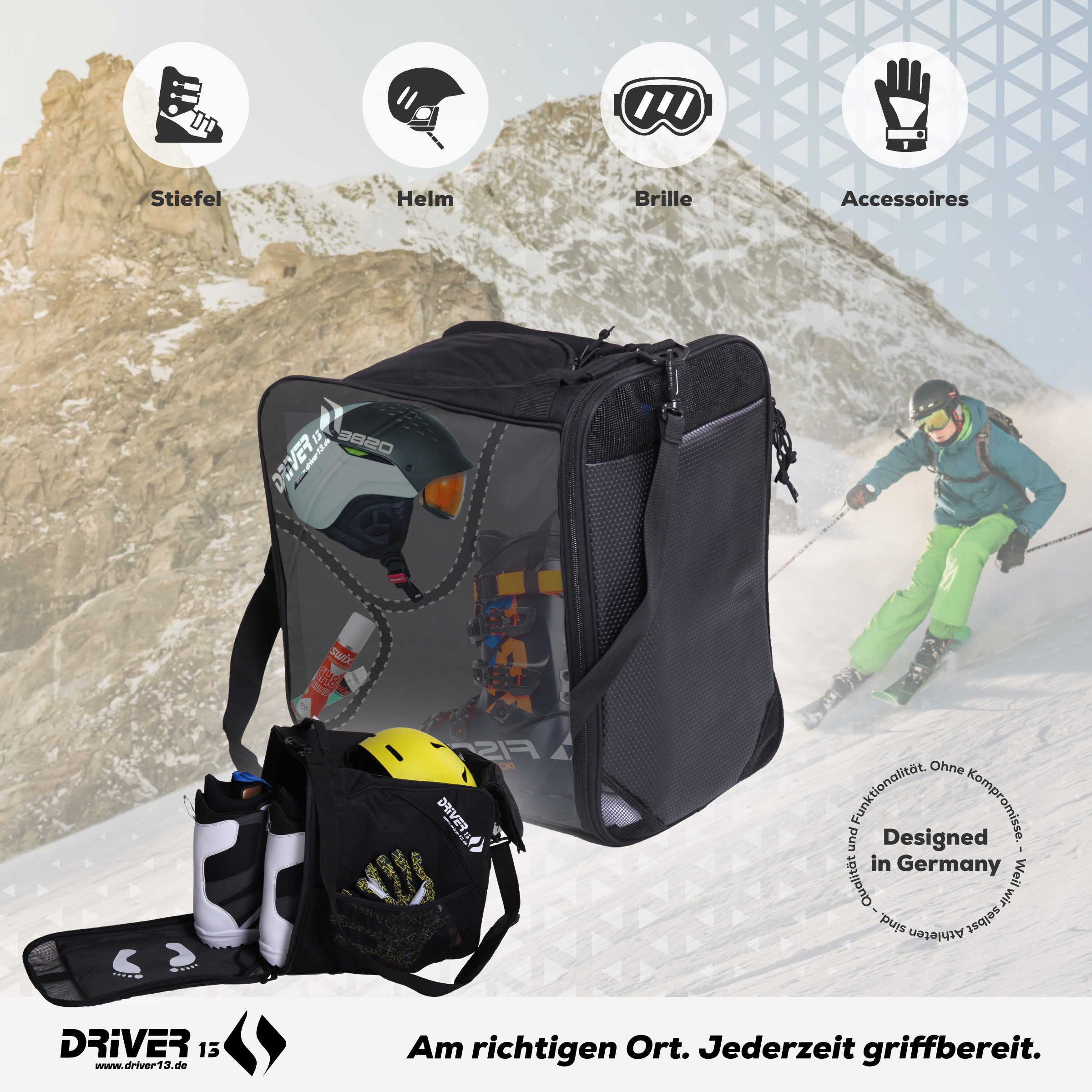 Mit der Kombi-Skischuhtasche von Driver13® sind Sie perfekt organisiert und bestens auf Ihre Skitage vorbereitet!