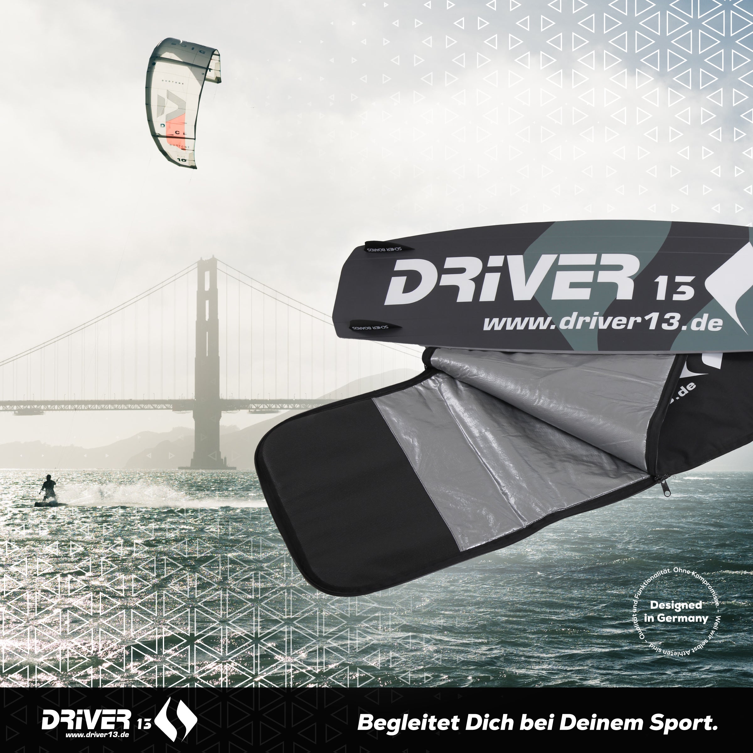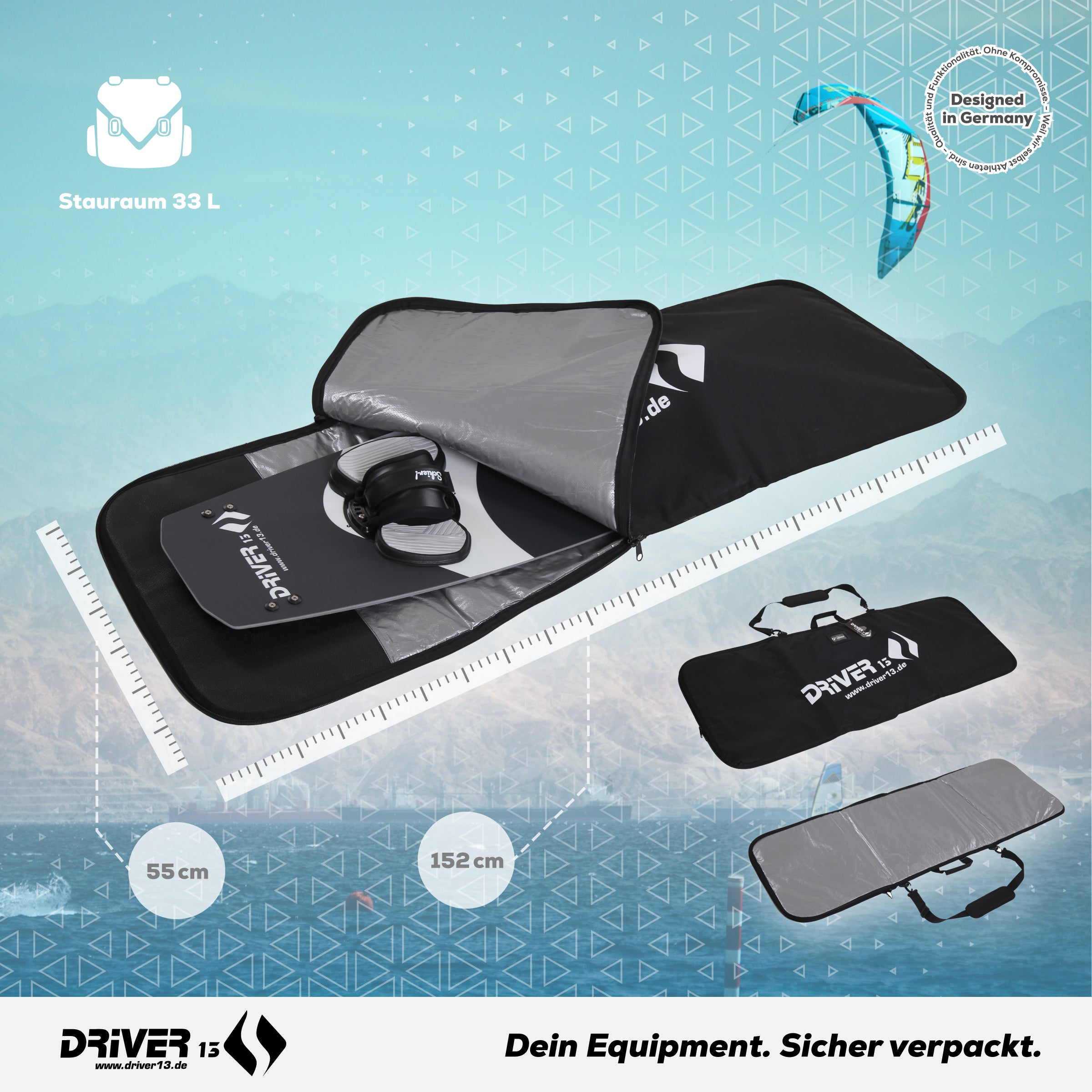 Die Single-Bag in der mittleren Größe für das bequeme Verstauen und Transportieren eines Kiteboards. Mit speziellem Finnenschutz und vollständiger 5 mm Polsterung - perfekt für den Transport im Auto zum Spot.
