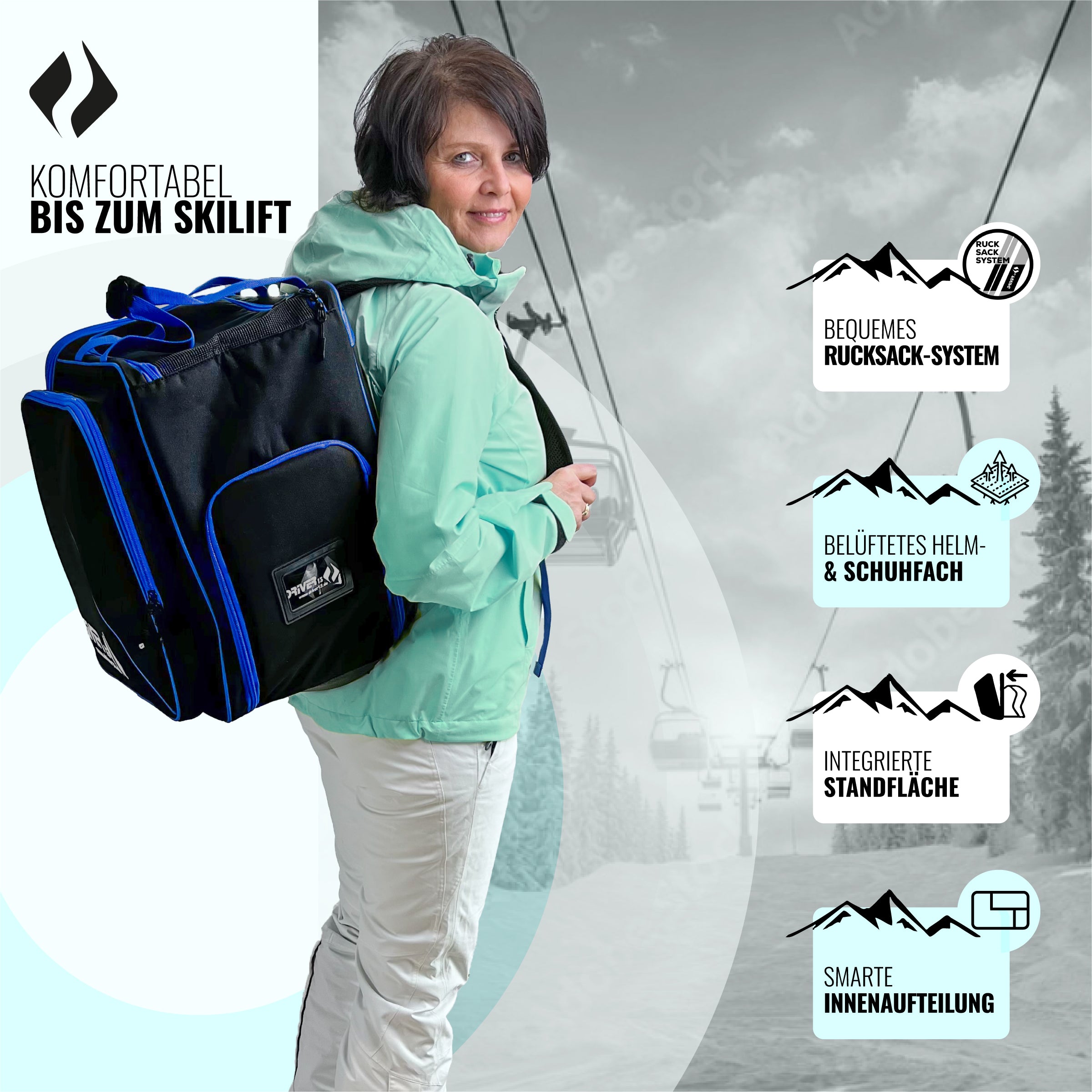 Skistiefelrucksack mit Helmfach schwarz-blau