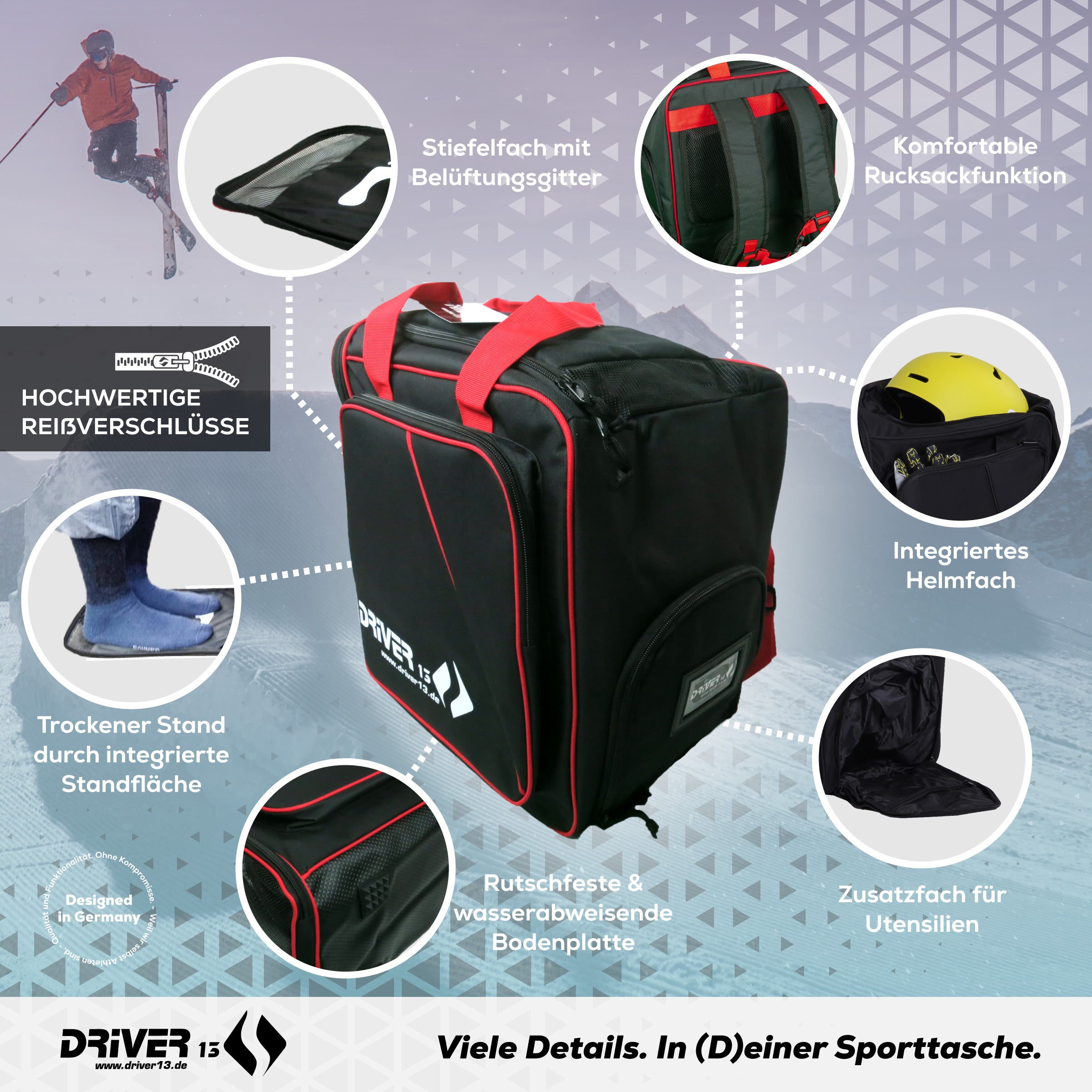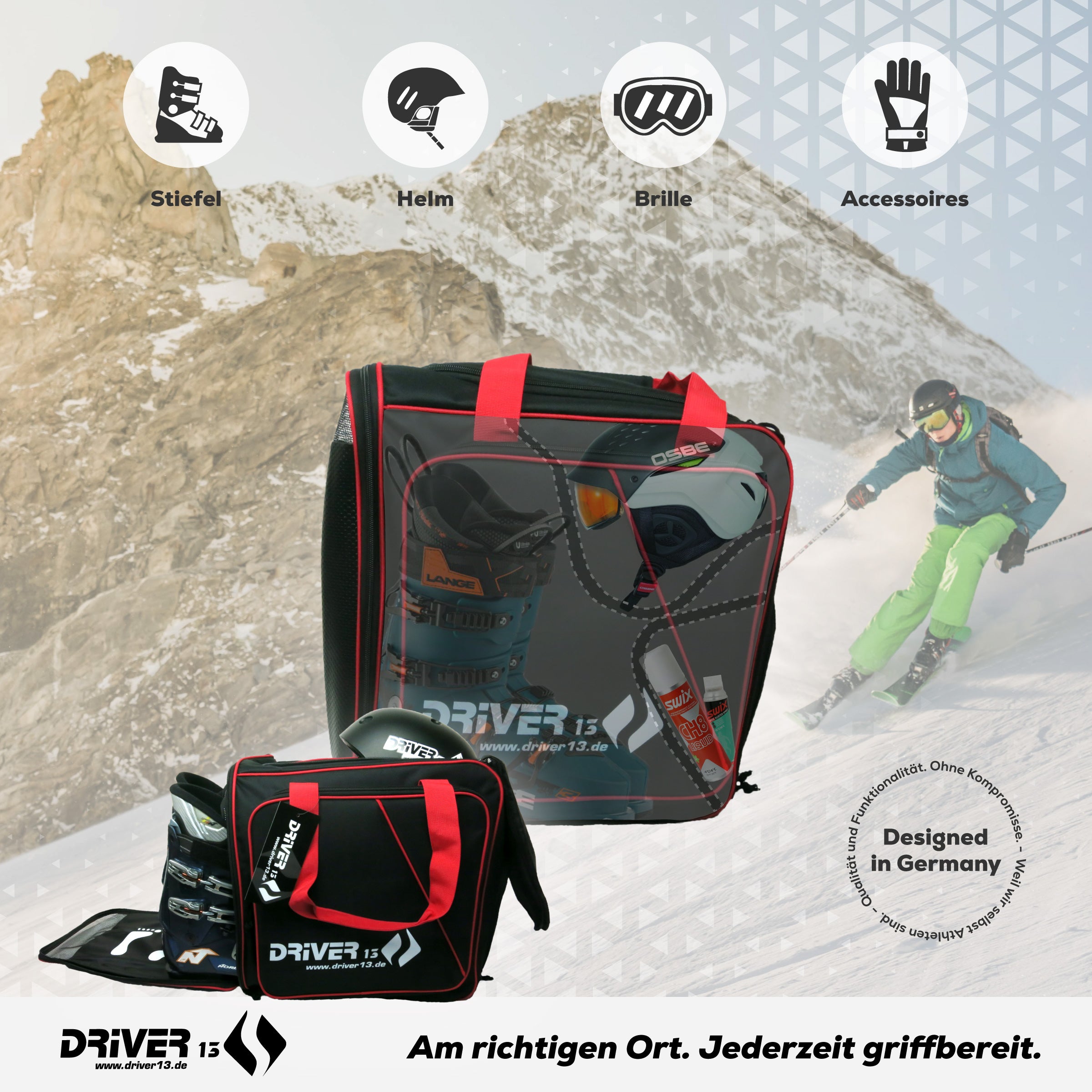 Passend zu Deiner Driver13 Boot Bag gibt es natürlich auch funktionale Taschen für Ski und Snowboards.