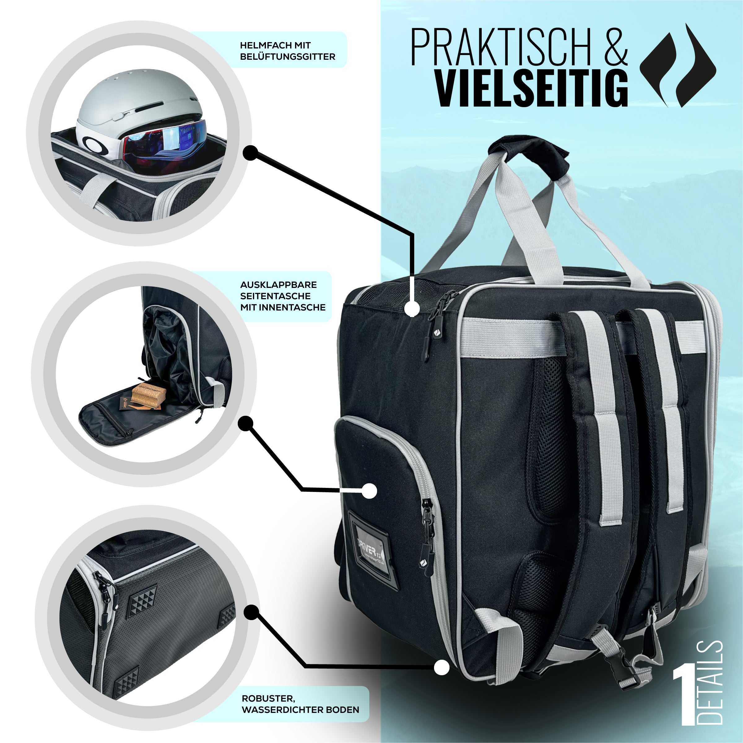 Skistiefelrucksack mit Helmfach schwarz-grau