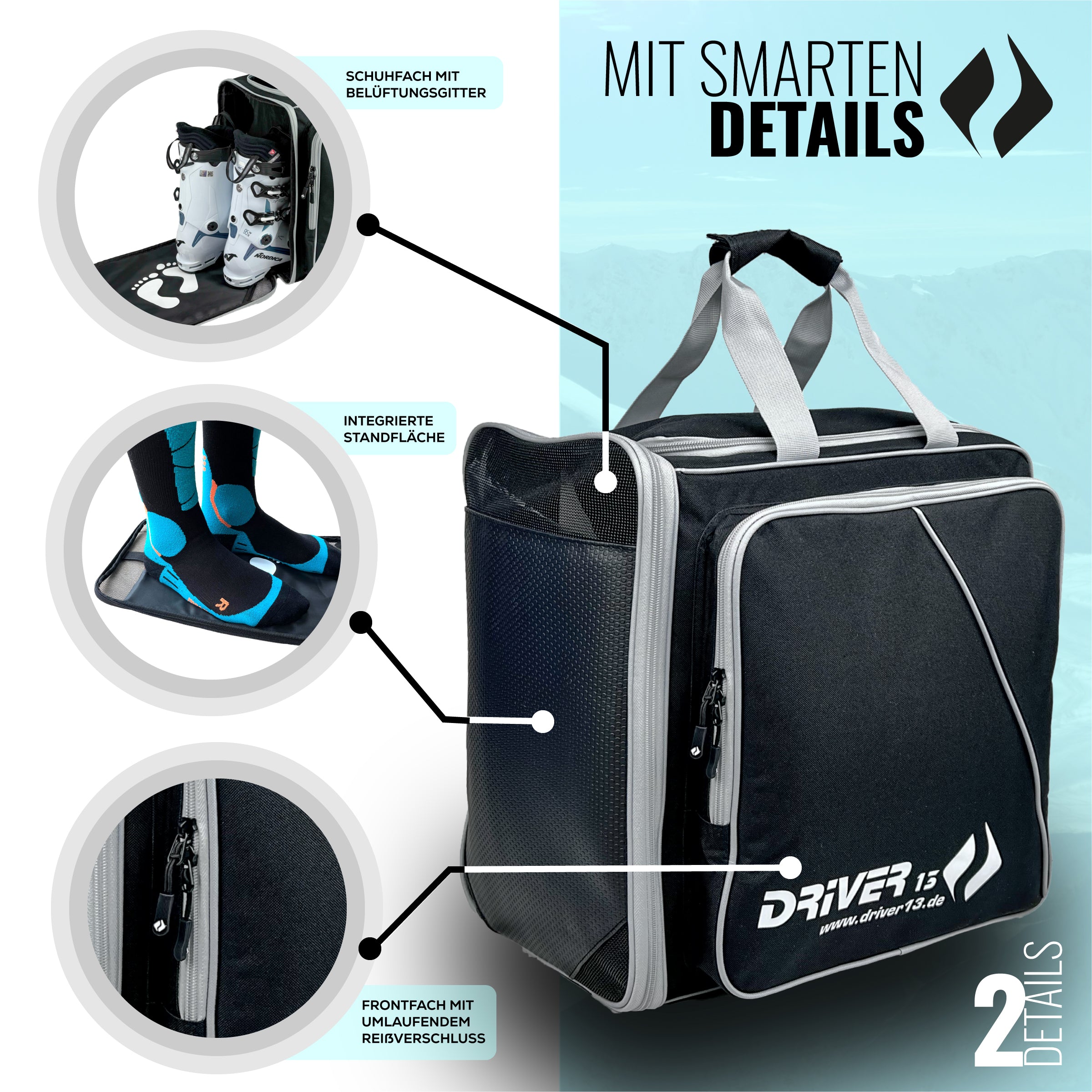 Passend zu Deiner Driver13 Boot Bag gibt es natürlich auch funktionale Taschen für Ski und Snowboards.