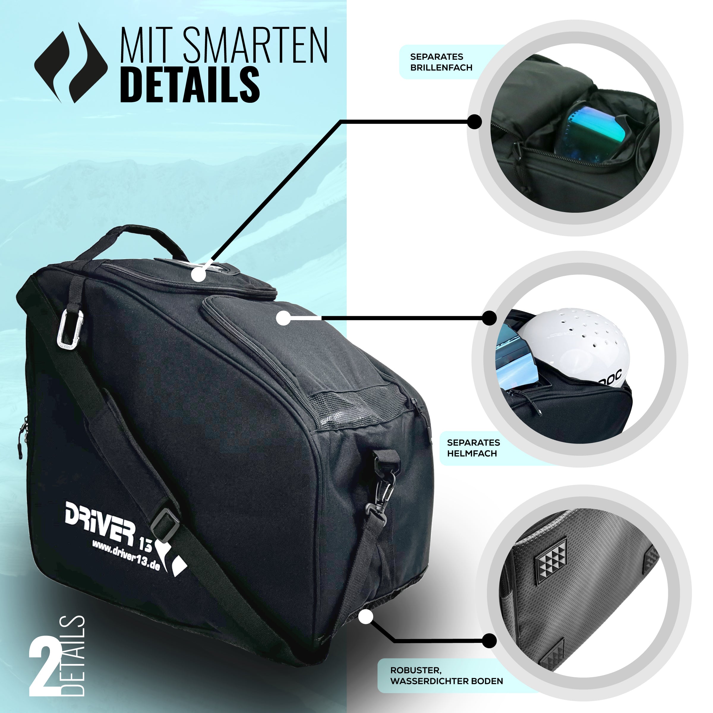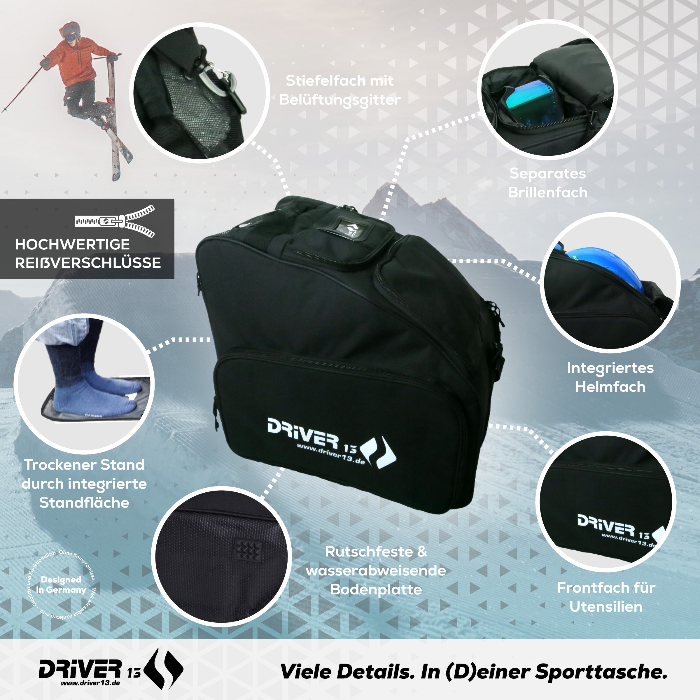 Passend zu Deiner Driver13 Boot Bag gibt es natürlich auch funktionale Taschen für Ski und Snowboards.