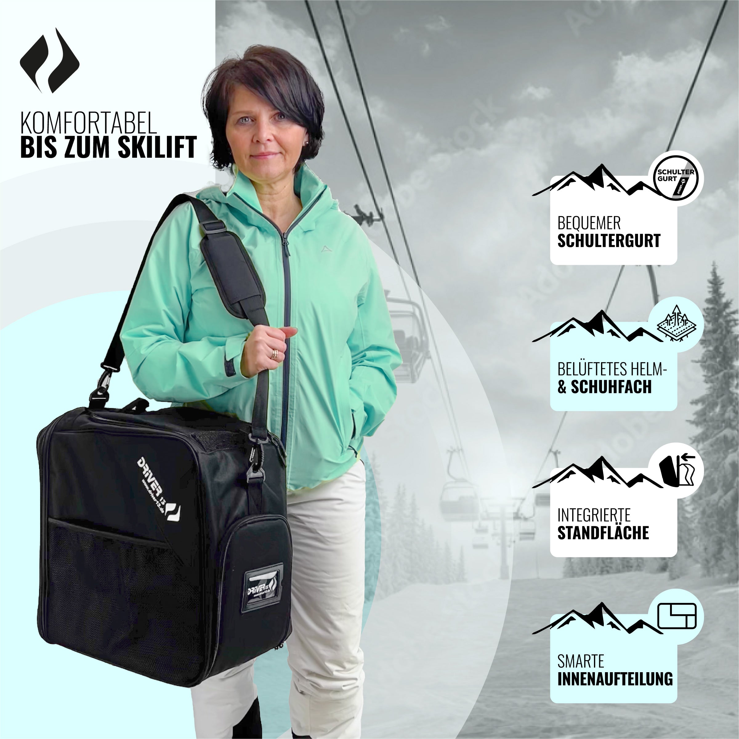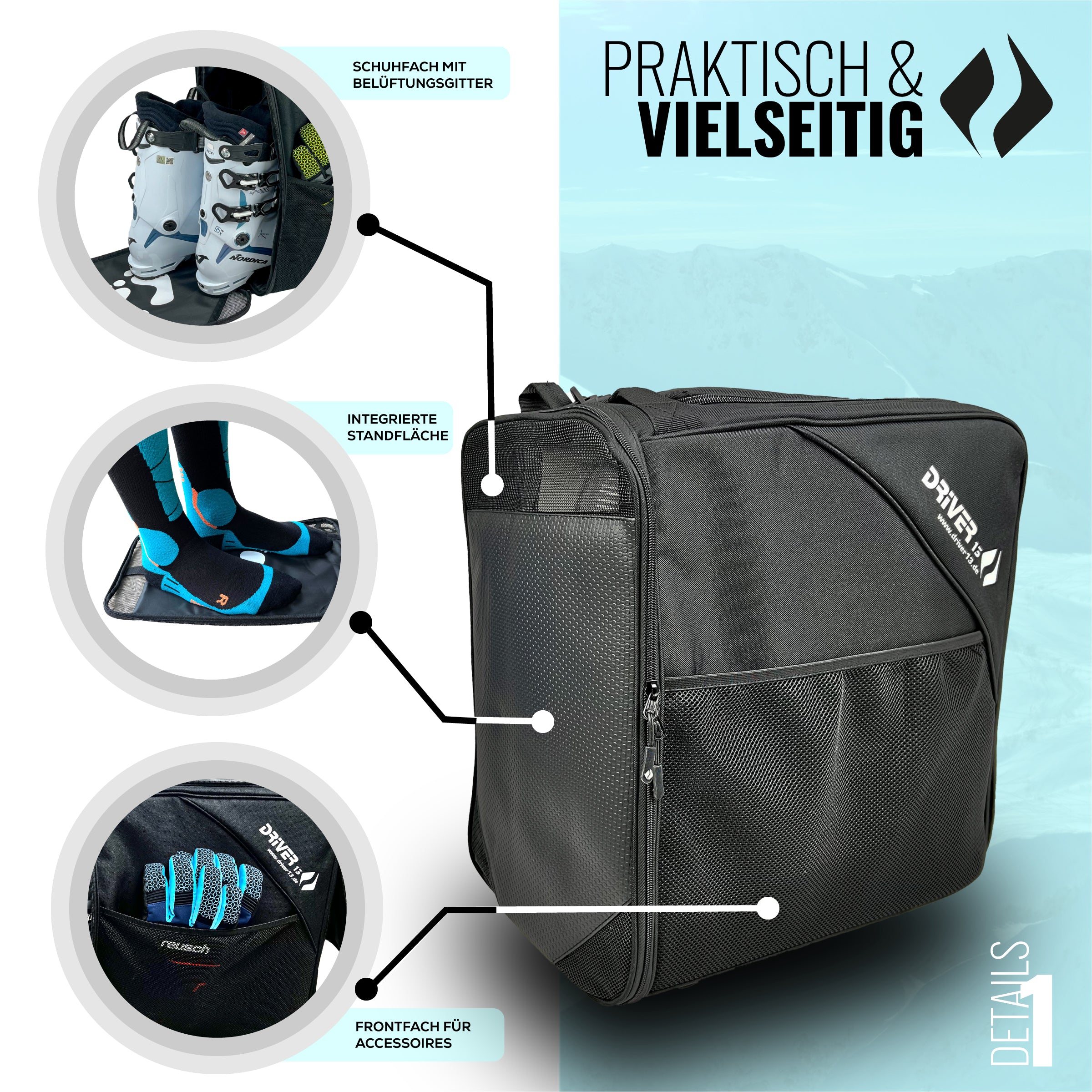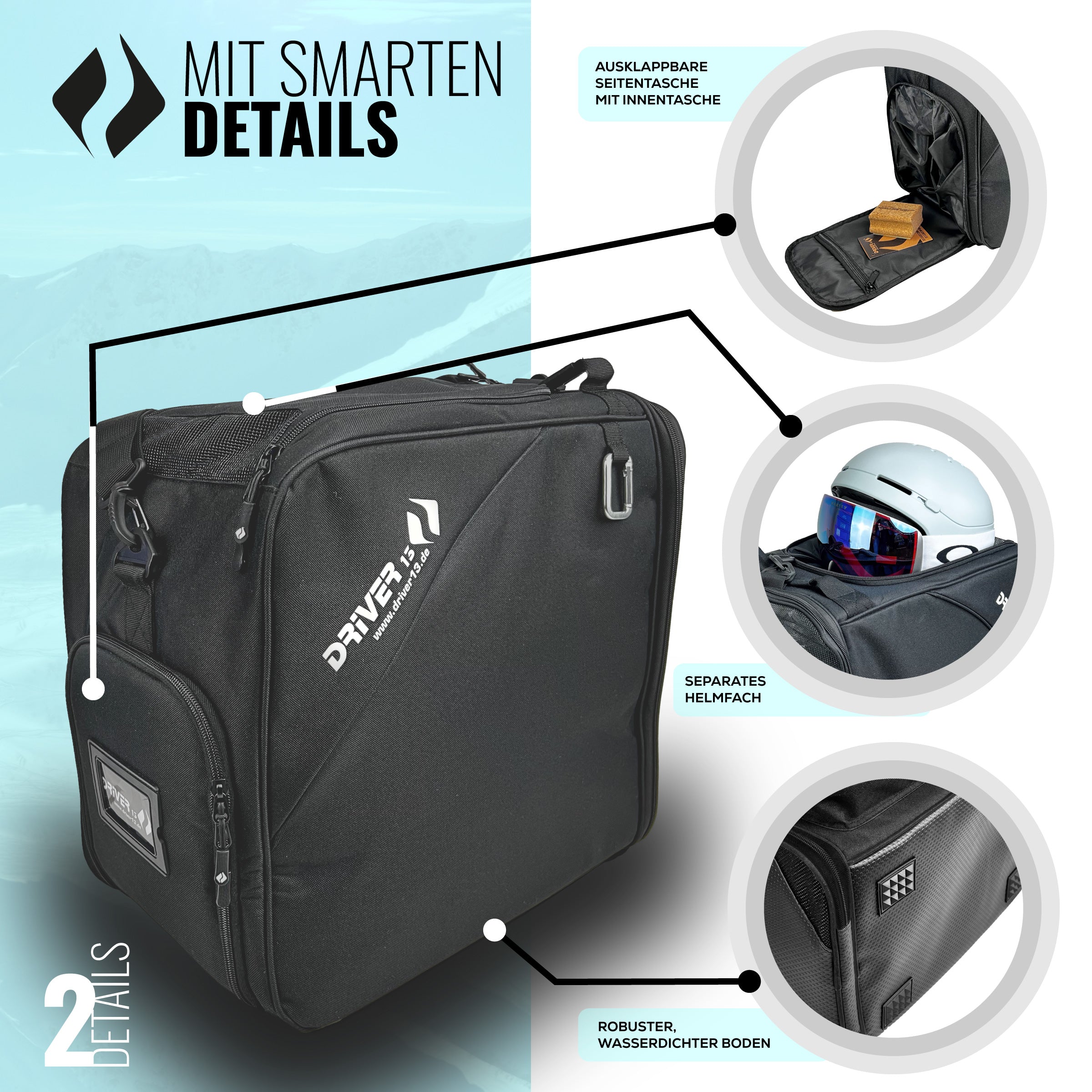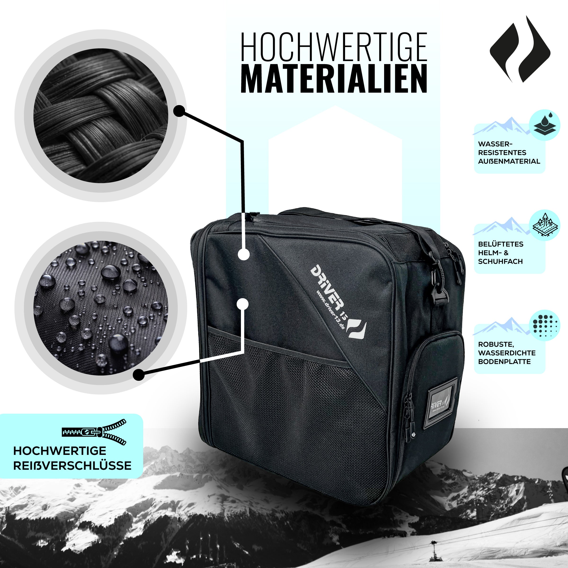 Mit der Kombi-Skischuhtasche von Driver13® sind Sie perfekt organisiert und bestens auf Ihre Skitage vorbereitet!
