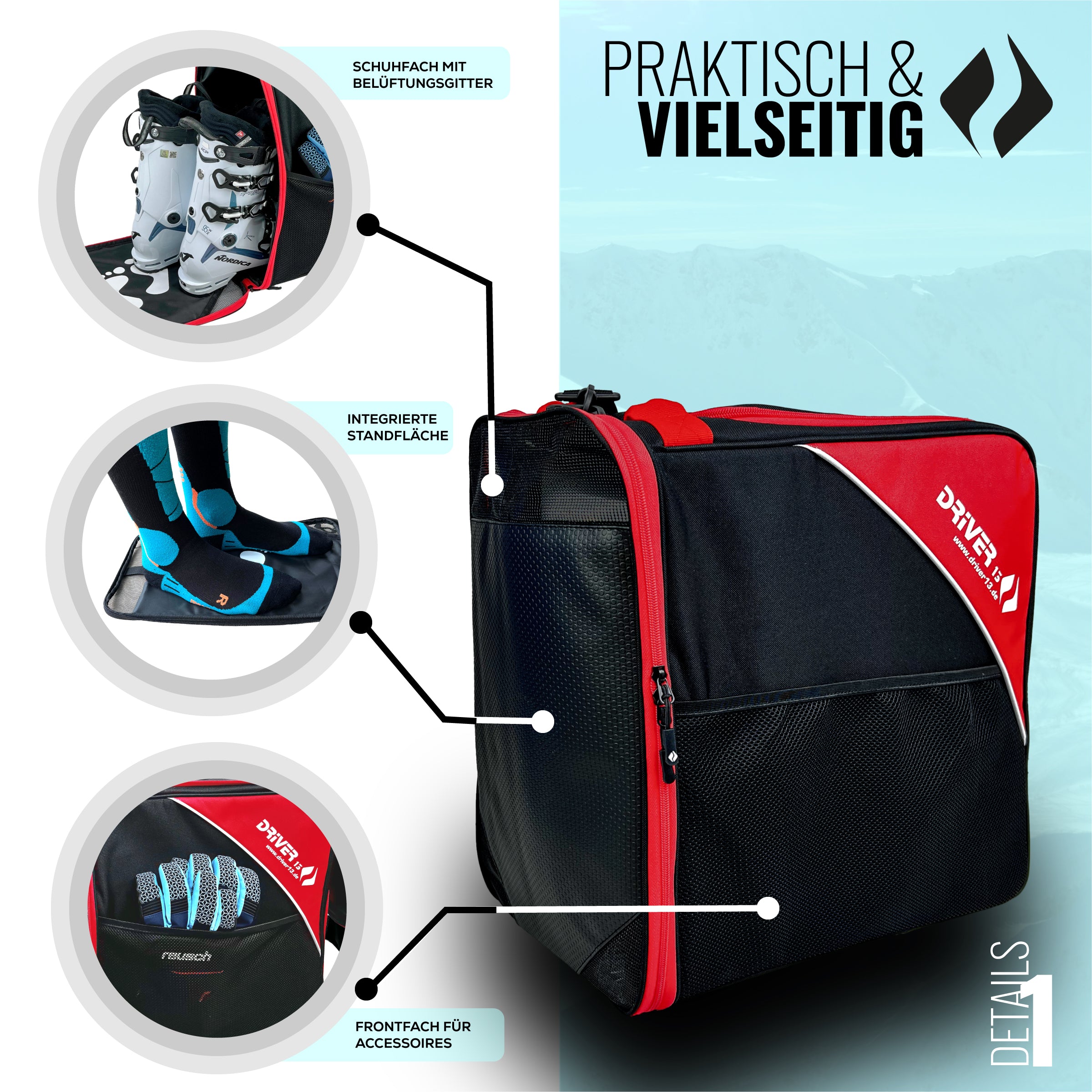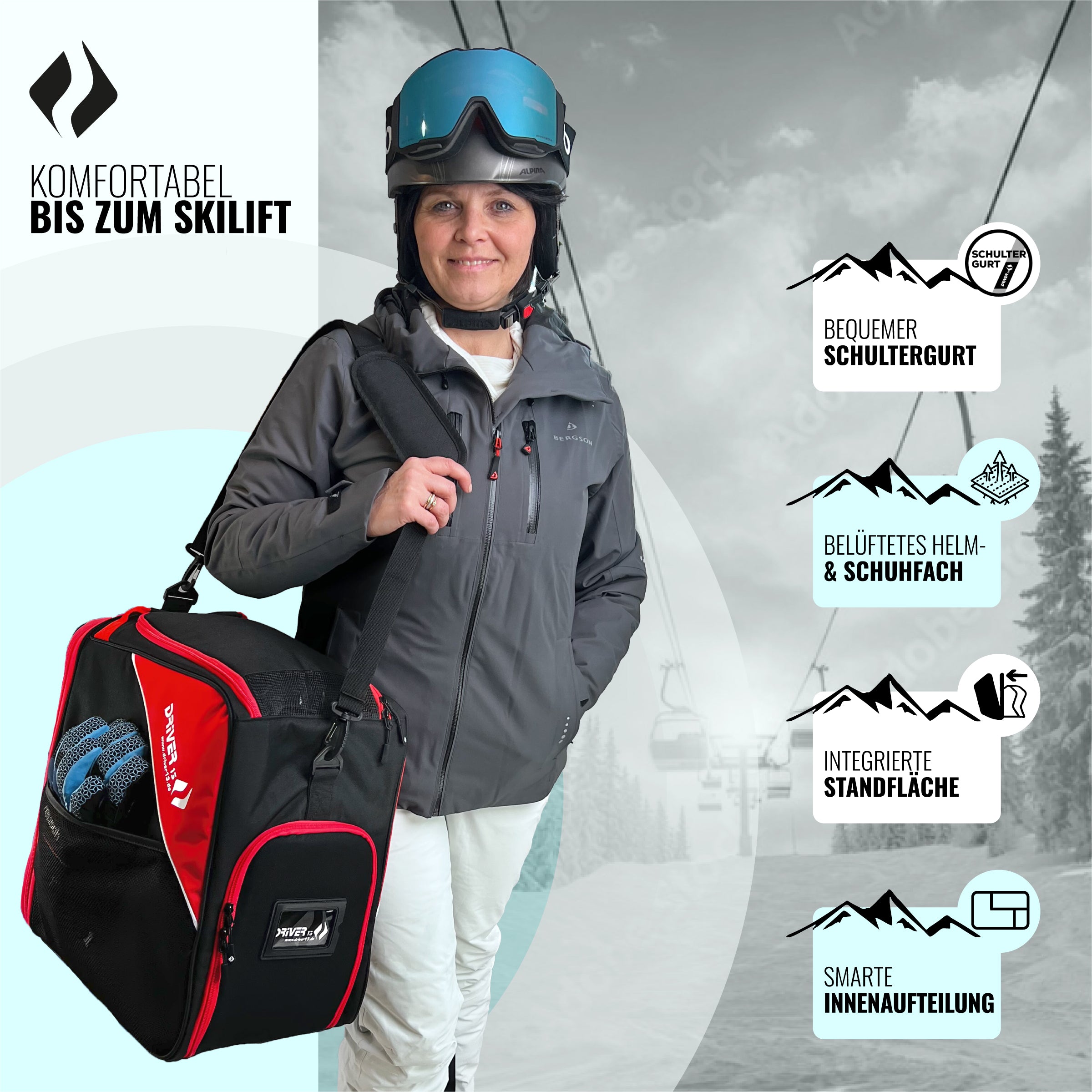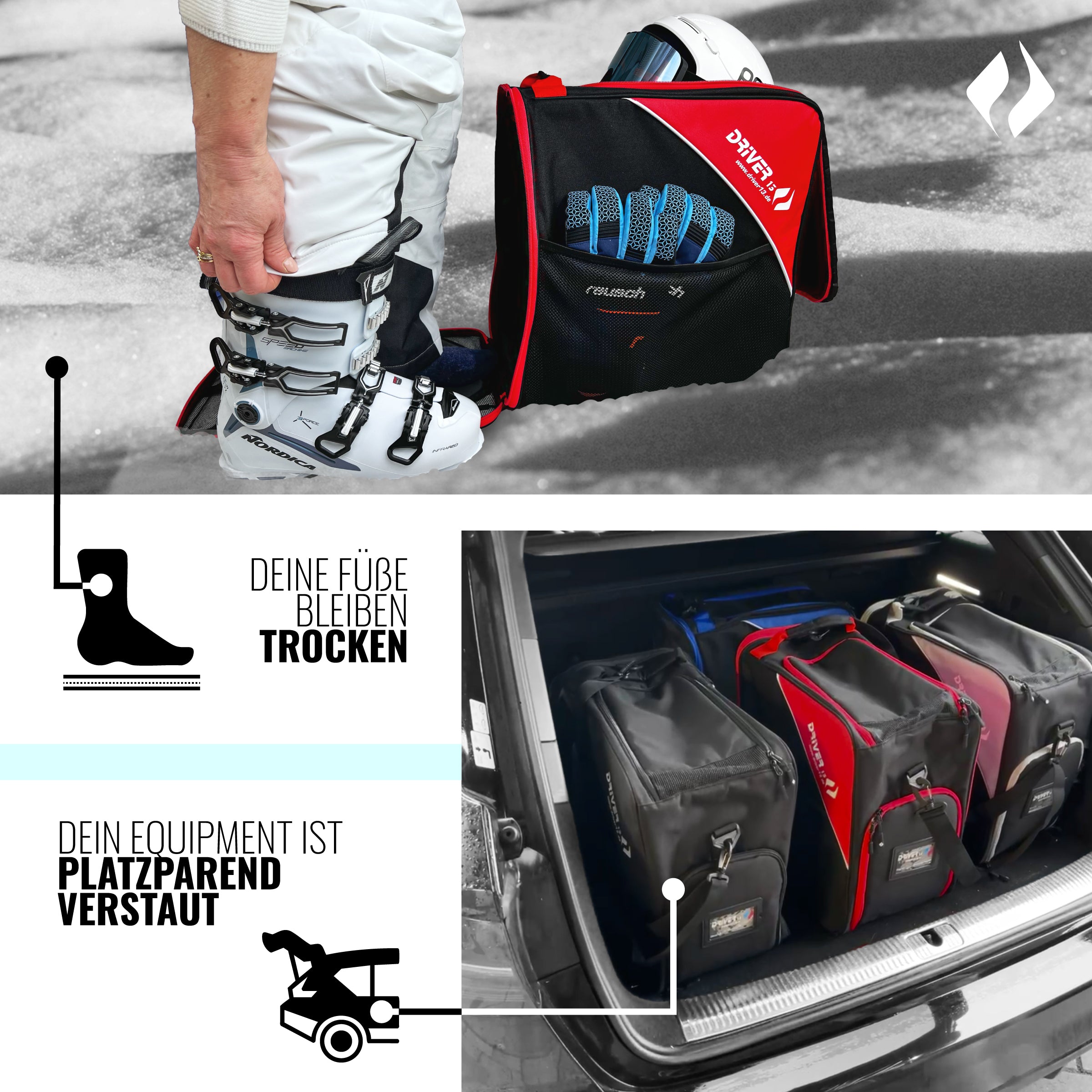 Passend zu Deiner Driver13 Boot Bag gibt es natürlich auch funktionale Taschen für Ski und Snowboards.
